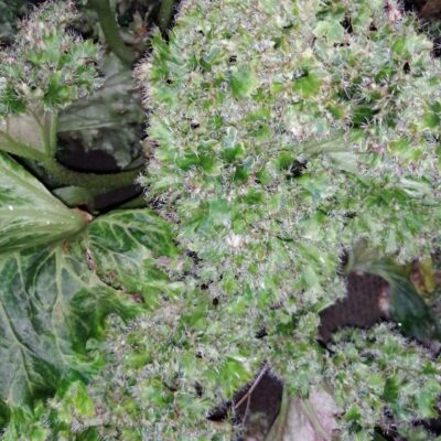 Pianta erbacea perenne che forma densi cuscini di grandi foglie soffici e che in giugno-agosto si copre di piccoli fiorellini giallo acido.