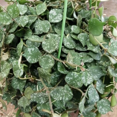 Ha piccole foglie verde scuro, screziate di verde grigio, tondeggianti, carnose.