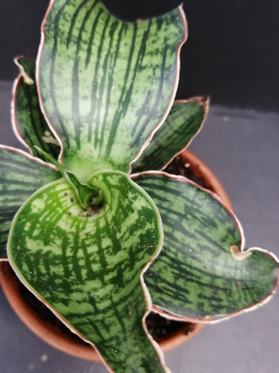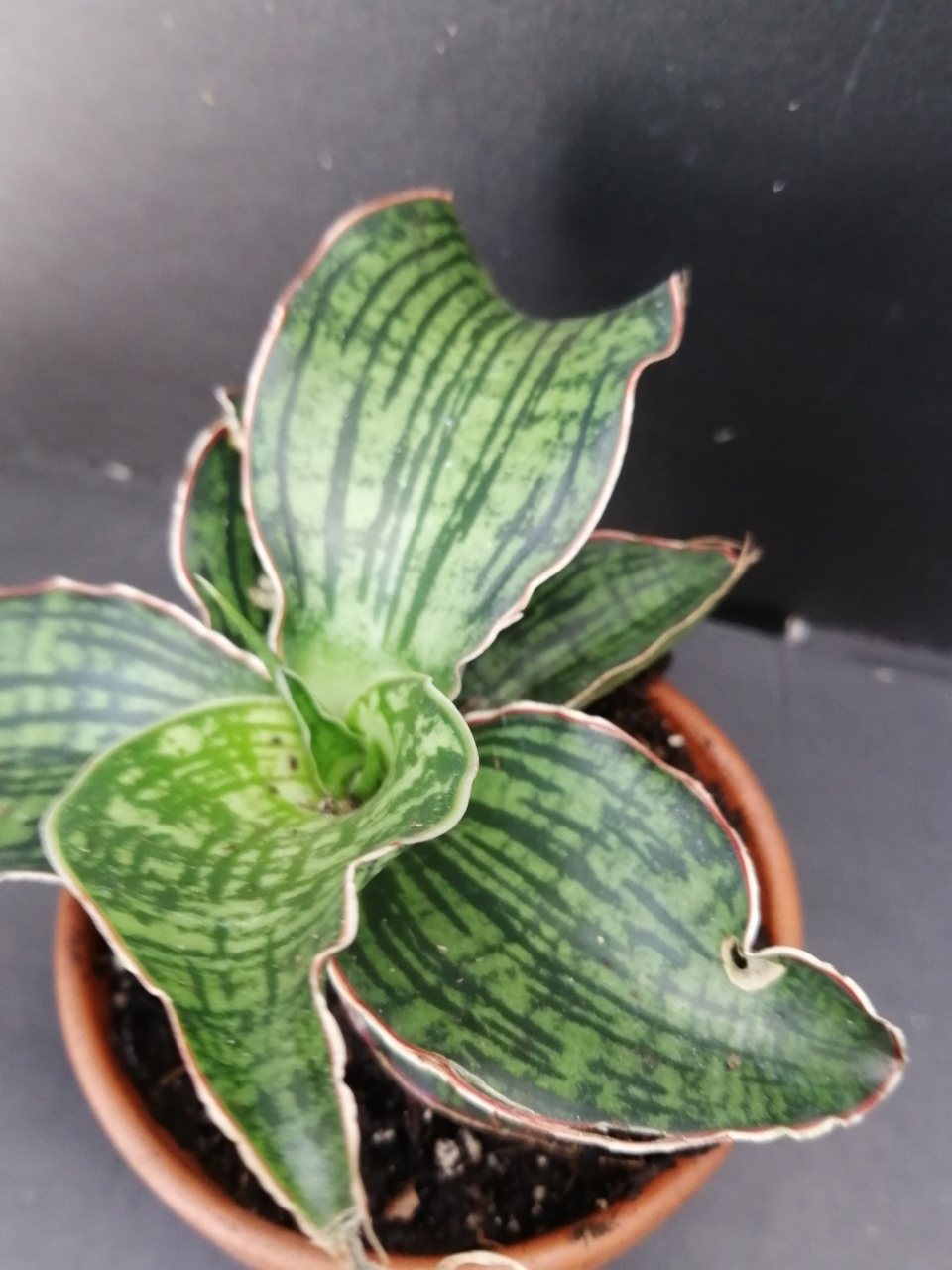 La Sansevieria Cleopatra รจ una varietร compatta e ornamentale di Sansevieria, conosciuta per il suo portamento compatto e ordinato. Le foglie sono rigide, carnose, di colore verde scuro con venature verde chiaro , che creano un contrasto elegante e decorativo. Questa varietร ha una crescita lentissima ed รจ conosciuta anche come Snake Plant. Questa pianta รจ estremamente resistente e poco esigente, perfetta sia per arredare ambienti domestici sia spazi lavorativi.