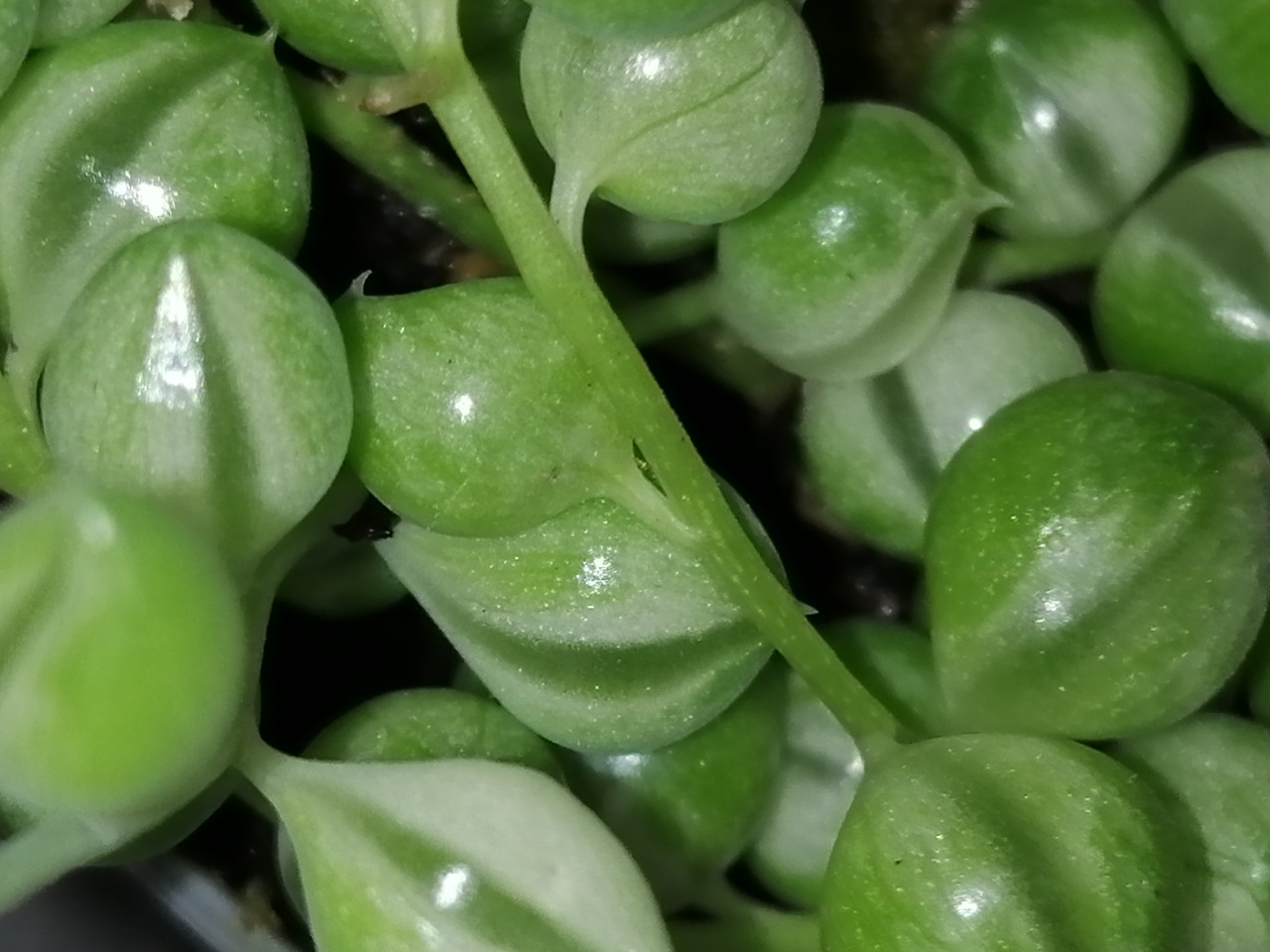 Senecio herrieanus Variegata รจ una pianta succulenta ornamentale molto apprezzata per il suo aspetto elegante e luminoso. I fusti ricadenti sono composti da foglie carnose sferiche, caratterizzate da una raffinata variegatura nei toni del verde chiaro, crema e bianco. Rispetto alla forma verde, questa varietร รจ piรน decorativa e ricercata, perfetta per valorizzare vasi sospesi, mensole e composizioni moderne.