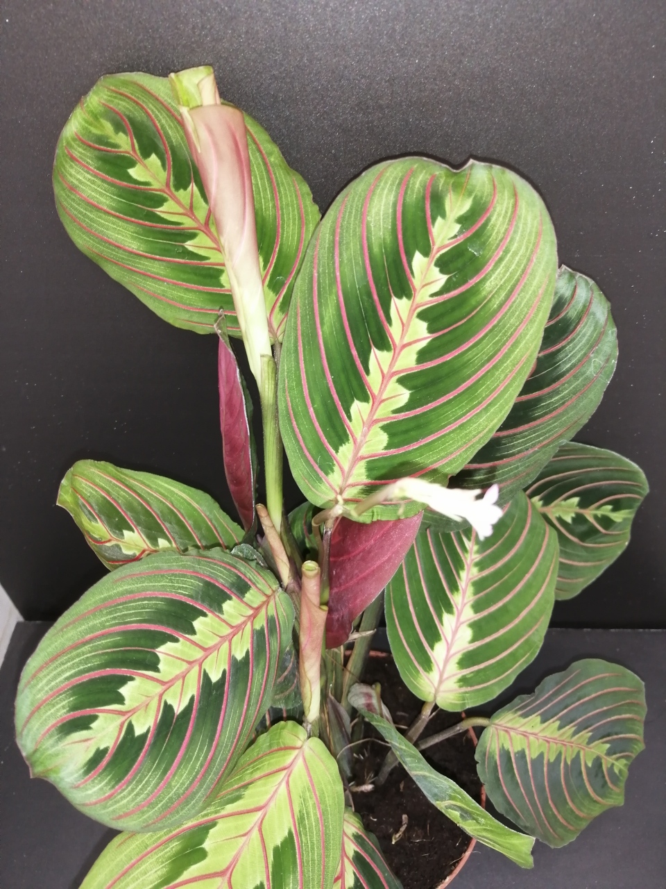 Maranta Fascinator, conosciuta anche come MarantaTricolor, Marantha leuconeura var. erythonema, Pianta della preghiera.
