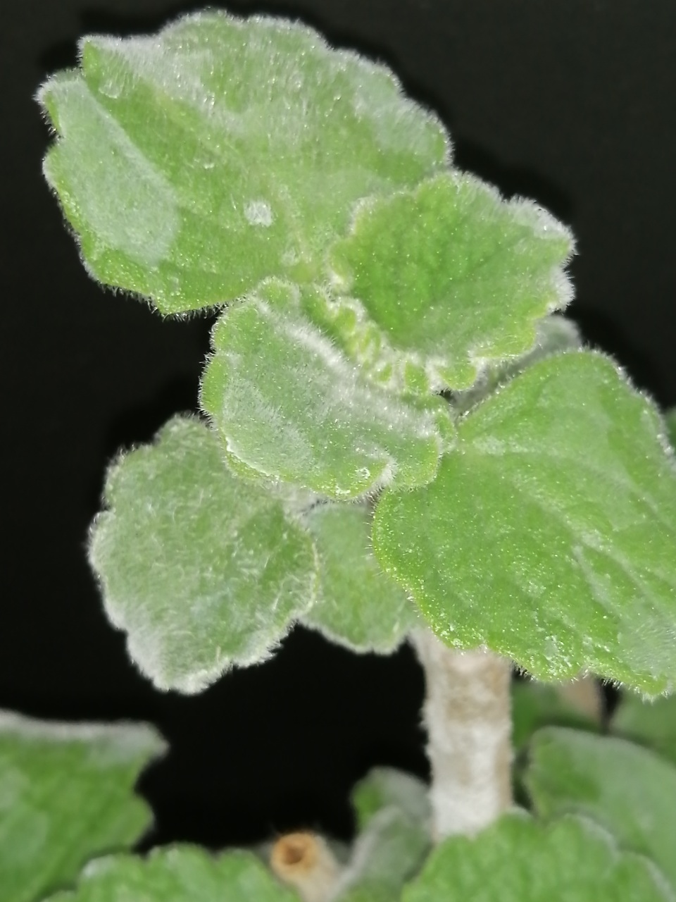 Pianta erbacea, semi succulenta, a rapida crescita. Foglie coperte da soffice peluria, verde intenso.