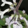 Le foglie sono piacevolmente aromatiche ed i fiori, portati in corte spighe, sono azzurro chiaro.